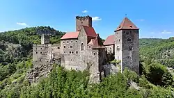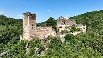 Inmitten der Stadt auf einem Felsen befindet sich die mittelalterliche Burg, die im 10. Jahrhundert als Holzwehranlage errichtet wurde und in mehreren Bauperioden über Jahrhunderte hinweg zu einer Wehr- und Wohnburg ausgebaut wurde. 1160 wurde die Kirche mit einem Karner erbaut und in die Wehrlinie der Burg miteinbezogen.