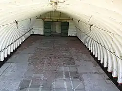 Teilweise werden in ausreichendem Abstand Erdwälle vor den Toren bis zur Shelterhöhe aufgeschüttet, um Explosionsdruckwellen und Splitter sowie direkte Treffer auch bei geöffneten Toren vom Inneren des Shelters und dem Flugzeug abzuhalten.