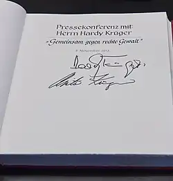 2013 gründete Krüger zusammen mit Exit Deutschland, Klaus Bednarz, Hark Bohm und Dieter Hallervorden die Initiative Gemeinsam gegen rechte Gewalt.[15] Ziel der Initiative ist die Präventionsarbeit gegen Rechtsextremismus. Außerdem war er Unterstützer von Mut gegen rechte Gewalt.