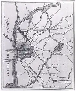 Gesamtplan für Columbia (South Carolina) aus dem Jahr 1905, gezeichnet von Harlan P. Kelsey