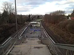 Bahnhof Harleshausen an der Harleshäuser Kurve; Blick von einer Brücke der Wolfhager Straße (B 251)