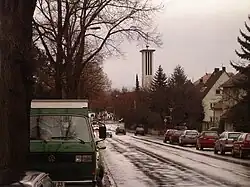 Ahnatalstraße nach Osten mit Turm der Kirche Herz Mariä