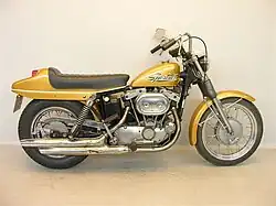 Die XR-750 entstand 1970 aufgrund eines geänderten Reglements für Flattrack-Rennen mit einem Hubraumlimit von 750 cm³. Um diese Grenze nicht zu überschreiten, wurde der Hub des Sportster-Motors drastisch reduziert. 1972 wurde der Motor grundlegend überarbeitet mit Leichtmetall-Zylinderköpfen, was die bisherige Neigung zur Überhitzung beseitigte. Der Hub wurde weiter reduziert auf 2,98 in (75,7 mm), die Bohrung dafür auf 3,125 in (79,4 mm) für weiterhin 749 cm³. Gedrehte Zylinderköpfe erlaubten es, beide Vergaser auf der rechten Seite des Motorrads anzubringen. Die XR-750 wurde zur erfolgreichsten Rennmaschine der AMA.[2] Weitere Bekanntheit erlangte sie als Stunt-Motorrad von Evel Knievel.