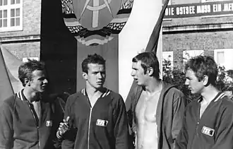 DDR-Meister in der 100-Meter-Freistilstaffel 1971 von links nach rechts: Wilfried Hartung, Hartmut Flöckner, Lothar Gericke und Werner Hinz.