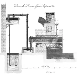 ![]() Apparat zur Herstellung von Harzgas aus dem Jahr 1828 nach John Frederic Daniell. | |