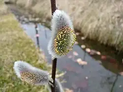 Auch ökologisch wichtige Bäume wie Silber-Weide, Korb-Weide, Lavendel-Weide finden sich an den Ufern.[11][12] Die Dämme sind von ganz unterschiedlichen Pflanzen wie Wermutkraut, Blasser Schaf-Schwingel und Quendel-Sandkraut besiedelt. Die nichtsanierten Teichdämme weisen dabei eine geschlossene Krautdecke („grüner Damm“) auf, während die sanierten oftmals mit Schotter und Gesteinsgrus bedeckt sind.