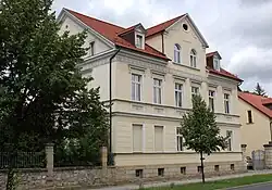 Die zweigeschossige Villa entstand im Jahr 1873 im Stil des Spätklassizismus. Das Gebäude ruht auf einem Quadersockel und verfügt über eine mit dekorativen Elementen versehene, verputzte Fassade. Neben dem Haus befindet sich eine Toranlage sowie ein mit einer Einfriedung versehener Garten.