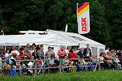 Fahrerlager in Hausen mit Blick auf das Festzelt