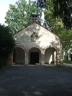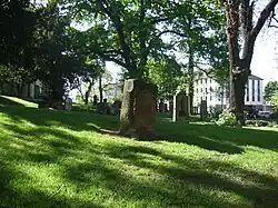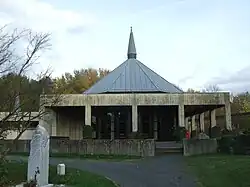 1860 | Der Friedhof wurde unterhalb der Kirche auf einem Kalksteinrücken errichtet. Die runde, mit Schiefer eingedeckte Friedhofskapelle steht unter Denkmalschutz. |