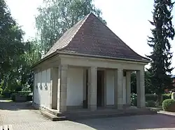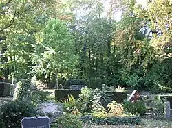 In der parkartigen Anlage sind 1843 russische Kriegsgefangene anonym bestattet, ein russisch-orthodoxes Kreuz erinnert an sie. |