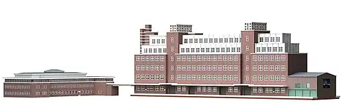 Das Lagerhaus wurde als Gebäudeensemble konzipiert und realisiert: als Ergänzung war von vornherein ein Verwaltungsgebäude geplant; die Zentralverwaltung III sollte die beiden bereits vorhandenen Verwaltungsgebäude der Konzernzentrale ergänzen. Behrens hat zusätzlich ein rückwärtig angeschlossenes eingeschossiges Speziallager für Öle und Fette entworfen und realisiert. Abgerundet wird der Komplex durch eine Toranlage mit Pförtnerhaus.