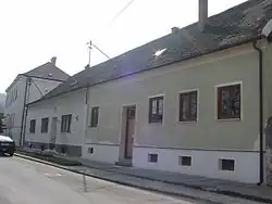 Im heutigen langgestreckten ebenerdigen Zweifamilienhaus mit hoch gezogenem Kellergeschoß befand sich bis gegen Ende des 17. Jahrhunderts eine Synagoge.[13] Im 20. Jahrhundert kam es zu einer umfassenden Modernisierung des Gebäudes, das bis zum Jahre 1969 eine schlichte Fassade und Fenster mit profilierten Sohlbänken und geraden Verdachungen hatte.