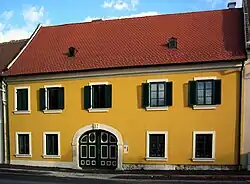Der zweigeschoßige Bau mit Putzfassade vom Anfang des 20. Jahrhunderts geht im Kern auf das 16. Jahrhundert zurück. Bis zur Neugestaltung der Fassade hatte das Gebäude gerahmte Fenster mit Sohlbänken. Der Bau hat sechs Fensterachsen mit einem Rechteckportal in der sechsten rechten Achse. Das Erdgeschoß liegt teilweise unter dem Straßenniveau und hat zwei Fenster. Putzrahmen um das Portal und die Fenster sowie Putzstreifen im Obergeschoß gliedern die Fassade. Das Satteldach mit drei Walmgauben erhebt sich über einem gekehlten Traufgesims.