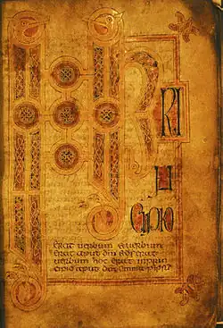 Book of Durrow | um 675 | Kloster Durrow, Irland, Lindisfarne, Northumbria oder Iona, Schottland | Evangeliar | Dublin, Trinity College Library, MS A. 4. 15. (57) | |