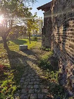 - In den Mauern der späteren Gutsanlage wurden vier Matronensteine gefunden (M. Aviaitinehae/Rumanehae, M. Alagabiae, M. Aufaniae). Der Fund der Steine deutet auf eine wesentlich längere römische Siedlungsperiode hin, da dieser Kult seinen Höhepunkt am Niederrhein bereits im ersten bis dritten Jahrhundert n. Chr. hatte und in der Spätantike im Zuge der Christianisierung verschwand.[9]