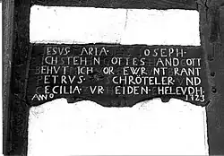 Am Hause befindet sich ein Segensspruch, der in einen Balken geschnitzt wurde. Er lautet: