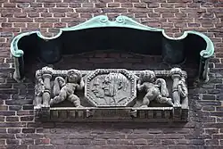 Die Fassade ist symmetrisch ausgeführt. Über der Arkade mit drei Bögen im Erdgeschoss folgen vier Hauptgeschosse. Ein vordachartiges Gesims trennt diesen Bereich von den beiden oberen Geschossen. Die verzierten Gauben im Dachgeschoss wurden nachträglich eingesetzt, sie waren ursprünglich kleiner und einfacher gestaltet.