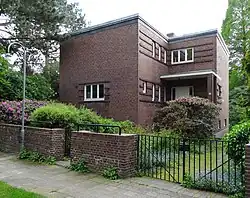 Im Bauhausstil der Moderne der 1920er Jahre wurde das damals nicht übliche Flachdach kritisiert und diskutiert.[2] Durch die Kuben und die Betonung der Horizontalen mit Hilfe der Mauerwerksstreifen wurde es zu einem der wenigen erhaltenen und beispielgebenden Gebäude aus dieser Zeit.