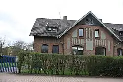 Die drei Doppelwohnhäuser 2 bis 12 sind variationsreich gestaltet. Es handelt sich um ein- bis zweigeschossige Backsteinbauten mit Putzornamenten. In den Satteldächern sind Schleppgauben eingebaut. Die Giebelspitzen sind verschiefert. Die Fensteröffnungen sind segmentbogig. In den Fenstern sind größtenteils moderne Ganzglasscheiben eingesetzt.