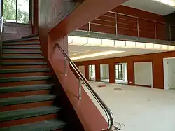 Die Innenausstattung war in der ursprünglichen Fassung sachlich technisch geprägt. Die Heizungsrohre im voll verglasten Windfang waren unverkleidet, in die Halle führte ursprünglich eine Glastür. Die Halle ist zusätzlich durch deckenhohe Neonröhren beleuchtet und war ursprünglich mit einer hellen Ahorn-Täfelung versehen.