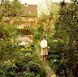 Der vier Meter breite Garten zieht sich zwölf Meter in die Länge. An seinem Ende führt ein etwa ein Meter breiter sogenannter Düngeweg direkt ins nahegelegene Geschäftszentrum von Klein Borstel. Düngewege wurde in der Siedlung angelegt, damit die Bewohner düngerbeladene Wagen zu ihren Gemüsegärten fahren konnten. Entlang des Wegs stehen hohe Eichen.