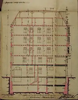 Das Gebäude an der Kaiserstraße 31 zählte zu einer sich über die Hausnummern 25 bis 37 erstreckenden Gruppe repräsentativer Gebäude, die die Kaiserstraße zur „Prachtstraße der Gründerzeit“ machten: „Nirgends gab sich Heilbronn großstädtischer“.[19] Die Keller der Vorgängerbauten blieben erhalten, so ein Gewölbekeller in 6 Metern Tiefe.[20]