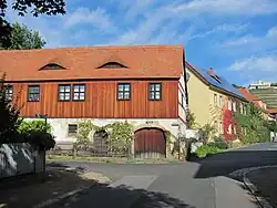 Das zweigeschossige, heute mitsamt Nebengebäude denkmalgeschützte[1] Winzerhaus hat ein massiv aus Bruchstein gemauertes Erdgeschoss sowie ein heute zur Straßenseite verbrettertes Fachwerkobergeschoss unter einem biberschwanzgedeckten Satteldach mit drei Fledermausgauben. Es steht traufständig in der Straßenflucht der Fahrbahn der Winzerstraße, dort in Ecklage zur Straßenkreuzung. Direkt an dieser Gebäudeecke befindet sich eine stichbogige Durchfahrt, links davon eine aus dem älteren Baukörper nach Osten versetzte Rundbogenpforte. Das Fachwerk darüber zeigt aufgeblattete Kopfstreben, der Giebel der Schmalseite daneben Fußstreben. Der rechte, jüngere Gebäudeteil greift weiter nach Norden aus, dort greift das Dach die ursprüngliche Firstlinie auf und bedeckt mit einem nach Norden flacher abgeschleppten Dachteil auch den später geschlossenen Laubengang.