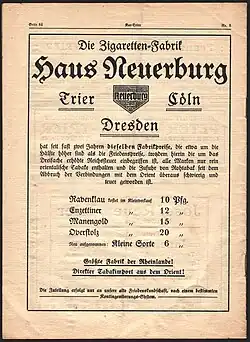 - ↑ Die Tabak-Dynastie Neuerburg: Wittlicher Zigarrenfabrikanten gründen Unternehmen in Trier. Trierischer Volksfreund, 15. April 2015, abgerufen am 26. Januar 2021.