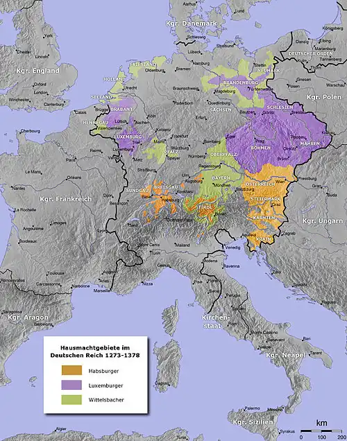 Eine erfolgreiche Hausmachtpolitik wurde unter anderem von Kaiser Karl IV. aus dem Haus der Luxemburger und von Kaiser Friedrich III. aus dem Haus der Habsburger betrieben. So erwarb Karl IV. die Oberpfalz, Schlesien, Niederlausitz und die Mark Brandenburg, wobei er Reichspfandschaften nutzte. Friedrich III. gewann durch Verheiratung seines Sohnes mit der Tochter Karls des Kühnen Burgund und dessen Nebenländer, während durch den 1491 geschlossenen Erbvertrag Böhmen und Ungarn im Jahre 1526 an Habsburg fielen. Friedrich – der sich aus der Reichspolitik vollständig zurückzog – legte damit wichtige Grundlagen für die spätere habsburgische Weltmacht.