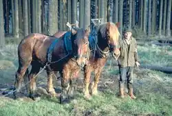 Noch bis ins 19. Jahrhundert bestand ein hoher Bedarf an Pferden, was sich unter anderem auch im Handel zeigte. So exportierte im Jahr 1887 Deutschland 11.428 Pferde im Wert von 657.100 Britischen Pfund nach England, importierte jedoch fast siebenmal so viele Pferde aus England (73.519 Pferde im Wert von 3.002.450 Britischen Pfund).[33] Die Erfindung von Automobil und Traktor machte im Verlauf des 20. Jahrhunderts das Pferd als Transportmittel und als Arbeitstier in den Industrieländern überflüssig.