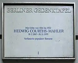 - ↑ Courths-Mahler, Hedwig. In: Berliner Adreßbuch, 1917, Teil 1, S. 415.