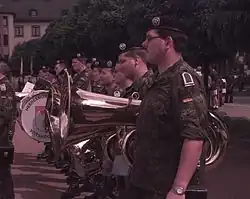 - ↑ Presse- und Informationsdienst der Streitkräftebasis: Feierliche Zeremonie anlässlich des Unterstellungswechsels der Heeresmusikkorps zum Zentrum Militärmusik der Bundeswehr. www.streitkraeftebasis.de, 16. September 2013, abgerufen am 13. Oktober 2013.