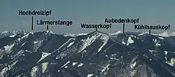 Etwa 1,5 Kilometer östlich der Lärmerstange liegt der Wasserkopf 1442 m, auf dem seit 2007 ein Gipfelkreuz steht. Auf dem Kamm nördlich vom Wasserkopf liegen der Aubodenkopf und das Haitzmanneck 1363 m und auf einem Seitenkamm östlich davon der Kühlhauskopf 1343 m.