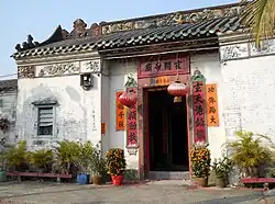Yuen Kwan Yi Tai Temple 玄關二帝廟. Erbaut ca. 1714. Pak Tai Temple, gewidmet Yuen Tai/Pak Tai und Kwan Tai (Guan Yu). Der Tempel ist zudem eine Ancestral Hall und ein Tempel für Sai Pin Wai. Auch Dorfversammlungen werden dort abgehalten. | Grade I | ||