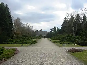 Auf dem Heidefriedhof gibt es eine Gedenkstätte für Kriegsopfer. Sie umfasst 624 Einzelgräber und ein Sammelgrab, in denen Soldaten des Zweiten Weltkrieges und Zivilisten bestattet sind.[2] In den letzten Kriegsmonaten mussten vermehrt Bestattungen vorgenommen werden, so dass die vorhandenen, innerstädtischen Friedhöfe bald an ihre Grenzen stießen. Um die Seuchengefahr einzudämmen, wurden Notbegräbnisstätten eingerichtet, beispielsweise auf dem Bäumerplan am St. Josef-Krankenhaus (das ehemalige Reservelazarett Nr. 111) oder am Wenckebach-Krankenhaus (ehemaliges Reservelazarett Nr. 122). Hier wurden rund 250 bzw. 350 Tote bestattet. Auf Veranlassung des Gartenbauamtes wurden im März 1952 diese Toten aus hygienischen Gründen in Einzelgräber umgebettet. Tote, deren Identifikation nicht mehr möglich war, wurden in einem Sammelgrab bestattet, welches mit einem 9,5 Meter hohen Holzkreuz gekennzeichnet wurde. 2002 erfolgte eine Erneuerung der Grabkreuze. Dabei wurden die Daten der Toten vervollständigt,[2] im Winter 2016 wurde das große Holzkreuz restauriert; von August bis November 2017 erfolgte ein Austausch der kleinen Holzkreuze gegen Kreuze aus dunklem Granit.