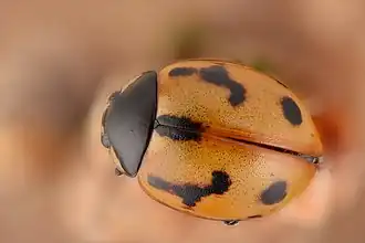 Die Käfer werden etwa vier bis fünf Millimeter lang. Die Deckflügel sind gelblich bis braun, manchmal auch gelblich-rosa, und haben bis zu sieben schwarze Flecken, die zu unregelmäßig geformten Bändern und großen Flecken zusammenwachsen können. Die Deckflügel können auch komplett schwarz gefärbt sein. Der Halsschild, der Kopf und die Beine sind schwarz, die vorderen Ecken des Halsschildes sind hell gefärbt.
