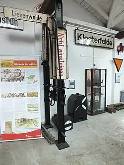 - den letzten mechanischen Zugzielanzeiger der NEB (Hampelmann) vom Bahnhof Basdorf