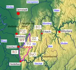 Geologisches Profil des Odenwaldes (Geo-Naturpark)[34] -