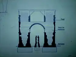 | Erhaltungszustand | Zwei Pfeiler und ein Durchgangsbogen erhalten, Statuenbasis rekonstruiert |