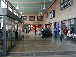 Das Empfangsgebäude ist eine 120 m lange Beton-Glas-Konstruktion; an seiner Dachhaut ist ein Kupferband angebracht. Sein mittlerer Teil ist eine 40 m lange, 11,5 m breite und 7,5 m hohe gestreckte Halle mit Glasfront. Der Fußboden der Empfangshalle ist mit Jura-Platten belegt, die Wände sind mit Jura- und Travertin-Platten verkleidet. Die Decke ist eine Rabitzkonstruktion mit Feldern aus blauem Spritzputz.