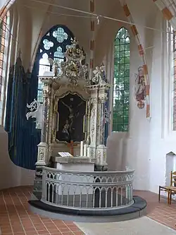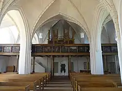 In Langhaus sitzen alle Kämpfer auf gleicher Höhe, doch haben die Gewölbe der Seitenschiffe niedrigere Scheitel. Kapitelle und Konsolen sind aus Backstein geformt und zum Teil als Köpfe ausgebildet. Die spätgotischen Wandmalereien aus der Zeit um 1500 (unter anderen der Hl. Christophorus) sind zum Teil stark übermalt. Das Altarretabel aus der Rokokozeit wurde 1764 bei dem Bremer Bildhauer Johan Krußbecker bestellt, es enthält ein Gemälde der büßenden Magdalena. Die Taufschale wird von einem Engel gehalten (2. Hälfte des 17. Jahrhunderts). Die Gemälde mit Szenen aus dem Leben Jesu an der Orgelempore im Westen wurden 1725 gemalt, Kanzel und Altarschranke stammen aus der frühen Neugotik, Mitte 19. Jahrhundert.