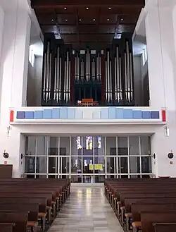Nach dem Wiederaufbau und Weihe der Kirche 1950 besaß der neue Kirchenbau zunächst keine Orgel. Durch die großzügige Spende eines Zweibrücker Kaufmannes konnte jedoch bald mit den Planungen für eine Orgel begonnen werden und schon im August 1951 lag ein Angebot der Firma Gebr. Späth Orgelbau vor. Als Opus 574 war 1952 der erste Bauabschnitt mit 13 Registern beendet. 1955 folgte der zweite Bauabschnitt, wodurch die Orgel auf 47 Register bei drei Manualen vergrößert wurde; sie enthielt unter anderem ein sog. Rückpositiv und ein Schwellwerk für romantische Orgelmusik. Am 30. Januar 1957 wurde sie geweiht. Die Orgelabnahme im Januar 1957 erfolgte durch Ludwig Doerr. Der Bau auf elektropneumatischer Kegelladen erwies sich jedoch als äußert störanfällig und schon zu Beginn der 1980er Jahre zeigten sich deutlich technische Mängel.