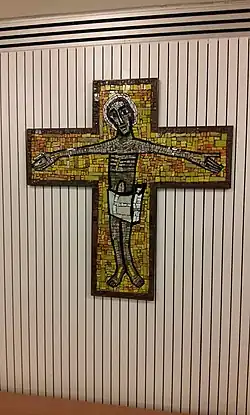 In der zweiten Hälfte des 19. Jahrhunderts wurden hölzerne Figuren der Maria und des Johannes hergestellt, die vom Hochaltar der alten Pfarrkirche St. Bonifatius stammen und nun mit einem hölzernen Kruzifix von 1960 eine Kreuzigungsgruppe im nordwestlichen Umgang der Kirche bilden. Dort befinden sich außerdem ein Kreuzweg in Mosaikform sowie ein Wandmosaik mit der Auferstehung Jesu Christi, die von Albert Reinker stammen. Ein weiteres Mosaik des gekreuzigten Christus befindet sich im nebenanliegenden Gemeindesaal.