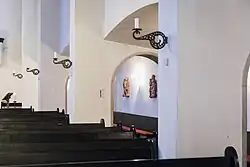 Mit dem umgestalteten Chorraum der 1960er Jahre wurden Ambo, Altartisch und Sakramentshäuschen nach Entwürfen von Rudolf Peer neu gefertigt.[6]