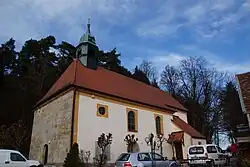 Die Saalkirche aus teilweise verputztem Quadermauerwerk wurde 1725 errichtet und 1848 erweitert. Ihr Äußeres wurde 1963, ihr mit einer Flachdecke überspannter Innenraum 1967 restauriert. Sie besteht aus einem Langhaus, aus deren Walmdach sich im Westen ein achteckiger Dachreiter erhebt, der den Glockenstuhl beherbergt und der mit einer Glockenhaube bedeckt ist, und einem eingezogenen, dreiseitig geschlossenen Chor im Osten mit der Sakristei an seiner Südwand.
