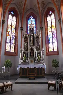Ein neogotischer Steinaltar wurde in die Neugestaltung des Chores einbezogen, sodass der Innenraum am 1. Oktober 1983 – 100 Jahre nach der Konsekration – wieder vollständig genutzt werden konnte. Am 22. Oktober 1987 wurde eine neue Orgel geweiht.[15][16]