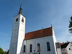 Der Saalbau mit Flachdecke enthält an der Westseite eine Doppelempore. Die Wände des Langhauses sind durch Blendarkaden über Pilastern gegliedert. An das Langhaus, mit vier Achsen, schließt sich der eingezogene Chor mit dreiseitigem Schluss an. Der in der Achse leicht nach Norden abweichende Chor enthält eine Stichkappentonne. Der Chorbogen, zwischen Chor und Langhaus, ist profiliert und besitzt einen Rundbogenschluss. Außen ist die Kirche durch Lisenen gegliedert, unterhalb der Traufe befindet sich ein Zahnschnittfries. Die bis zur halben Höhe des Chores angebrachten Strebepfeiler sind noch spätgotisch. Darüber befinden sich geknickte Lisenen und ein Zahnschnittfries. Der Zugang zur Kirche erfolgt durch das Portal an der Westseite. Flankiert ist dieses durch zweisäulige Rundbogenarkaden, darüber ein Giebel. Im Tympanon befindet sich eine Rundblende mit dem Relief eines Engels. An der Nordseite befindet sich der quadratische Kirchturm zu sechs Geschossen. Im Erdgeschoss befinden sich Schlitzfenster, in den vier darüberliegenden Obergeschossen sind Ecklisenen angebracht. Im obersten Geschoss befinden sich Doppelarkaden mit neuromanischer Mittelsäule. Der Kirchturm ist mit einem Spitzhelm abgeschlossen. Die Sakristei an der Südseite der Kirche wurde im 19. Jahrhundert errichtet.
