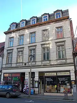 - Landesamt für Denkmalpflege Sachsen-Anhalt (Hrsg.): Denkmalverzeichnis Sachsen-Anhalt. Band 7: Falko Grubitzsch, unter Mitwirkung von Alois Bursy, Mathias Köhler, Winfried Korf, Sabine Oszmer, Peter Seyfried und Mario Titze: Landkreis Quedlinburg. Teilband 1: Stadt Quedlinburg. Fliegenkopf, Halle 1998, ISBN 3-910147-67-4, Seite 131.