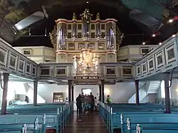 Die Ausstattung aus der Erbauungszeit ist nahezu unverändert erhalten. Die Decke ist mit einem Himmelszelt und Szenen aus dem Alten Testament bemalt, die allerdings schon 1754 erneuert werden mussten. Später wurde das Deckengemälde übertüncht und erst in den 1980er Jahren wieder freigelegt und restauriert.
