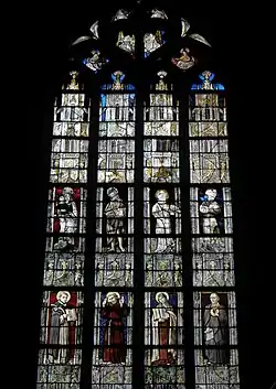 Das Fenster an der Südseite des Kirchenschiffs wurde von einer unbekannten Werkstatt geschaffen. Es zeigt Heilige, ein weit verbreitetes Bildmotiv der christlichen Kunst des Mittelalters und der frühen Neuzeit. Auf der oberen Reihe aus dem 15. Jahrhundert sind dargestellt: Madonna mit Kind, Johannes der Täufer, heiliger Laurentius und heiliger Stephanus. Auf der unteren Reihe aus dem 19. Jahrhundert sind zu sehen: Dominikus, Franz von Assisi, Teresa von Ávila und Johannes Eudes.